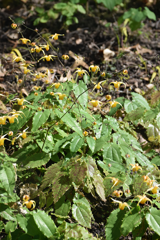 Akane Barrenwort's attractive spiny narrow leaves emerge red in spring, turning green in colour on a plant with a spreading habit of growth. As an added bonus, the foliage turns a gorgeous brick red in the fall. It features delicate nodding red star-shaped flowers with yellow tips rising above the foliage from mid to late spring.