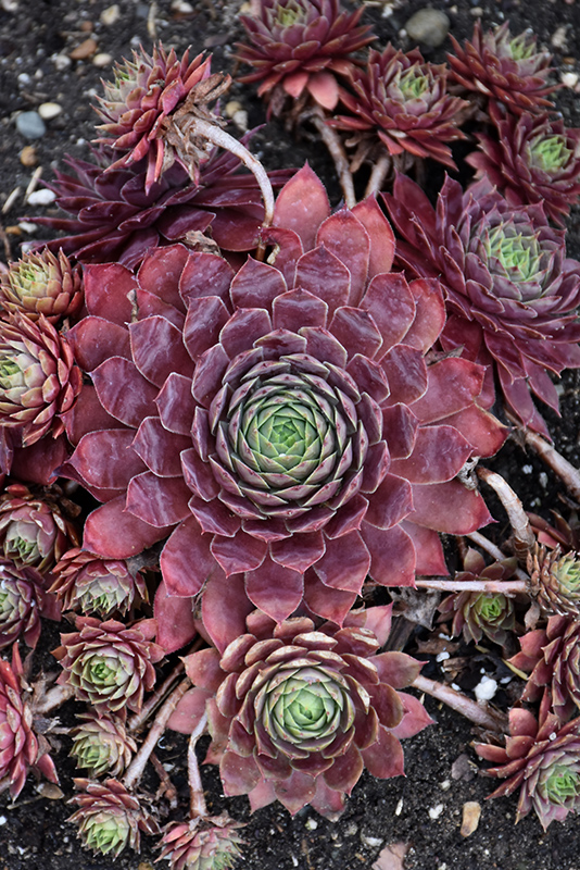 Peggy Hens And Chicks will grow to be only 5 inches tall at maturity extending to 12 inches tall with the flowers, with a spread of 8 inches. When grown in masses or used as a bedding plant, individual plants should be spaced approximately 8 inches apart. Its foliage tends to remain low and dense right to the ground. It grows at a medium rate, and under ideal conditions can be expected to live for approximately 20 years. As an herbaceous perennial, this plant will usually die back to the crown each winter, and will regrow from the base each spring. Be careful not to disturb the crown in late winter when it may not be readily seen!
