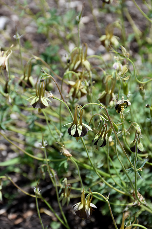 Chocolate Soldier Green Columbine will grow to be only 4 inches tall at maturity extending to 12 inches tall with the flowers, with a spread of 12 inches. Its foliage tends to remain low and dense right to the ground. It grows at a medium rate, and under ideal conditions can be expected to live for approximately 5 years. As an herbaceous perennial, this plant will usually die back to the crown each winter, and will regrow from the base each spring. Be careful not to disturb the crown in late winter when it may not be readily seen! As this plant tends to go dormant in summer, it is best interplanted with late-season bloomers to hide the dying foliage.