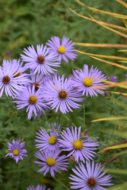 This vigorous native selection forms a nice clump, smothered with beautiful, daisy-like blue flowers with yellow centers in fall; puts on an amazing show even on hot, dry sites; needs sun and good drainage for best flowering
