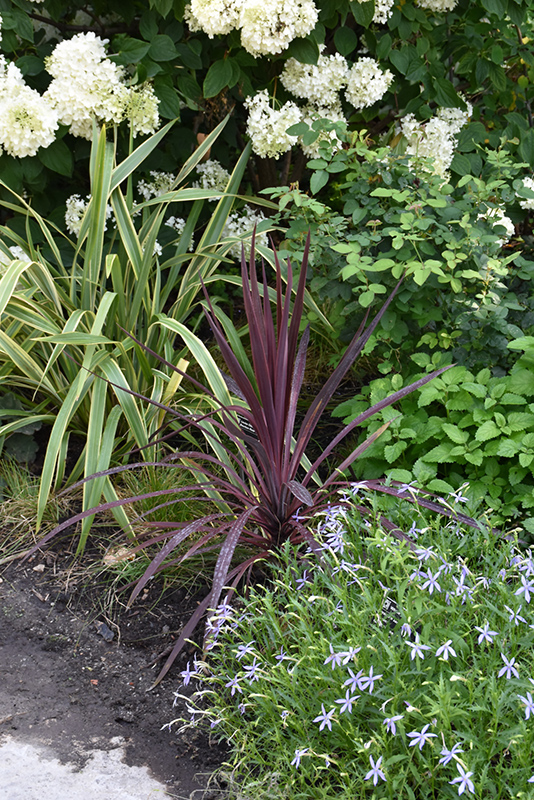 Black Knight Grass Palm features dainty panicles of fragrant white round flowers with chartreuse eyes along the branches in mid summer. Its attractive sword-like leaves emerge burgundy in spring, turning deep purple in colour with hints of black the rest of the year.
