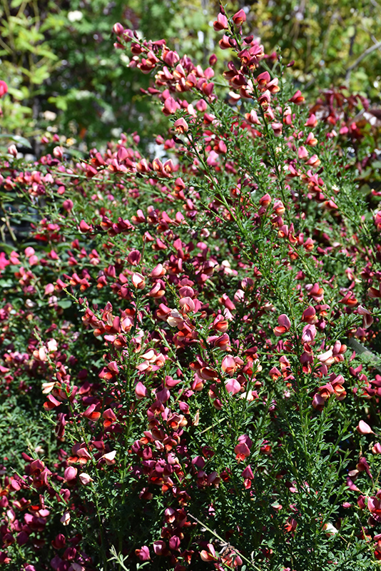 Sister Rosie® Scotch Broom is blanketed in stunning rose pea-like flowers with scarlet overtones and yellow tips along the branches from mid to late spring. It has emerald green deciduous foliage. The grassy leaves do not develop any appreciable fall colour. The lime green stems can be quite attractive.