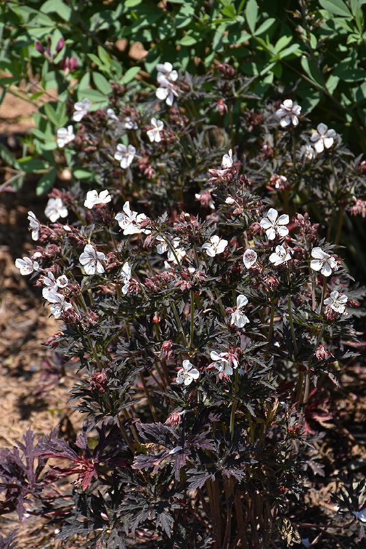 Midnight Ghost Cranesbill has masses of beautiful white star-shaped flowers at the ends of the stems from late spring to mid summer, which emerge from distinctive dark red flower buds, and which are most effective when planted in groupings. Its attractive deeply cut lobed palmate leaves emerge grayish green in spring, turning deep purple in colour with hints of black throughout the season.