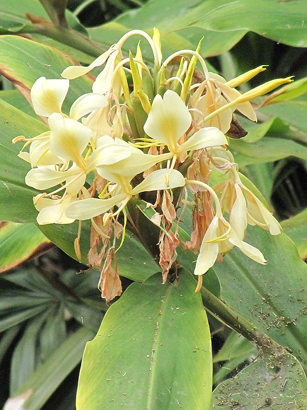 Yellow Ginger Lily will grow to be about 6 feet tall at maturity, with a spread of 3 feet. It has a low canopy with a typical clearance of 1 foot from the ground. Although it's not a true annual, this fast-growing plant can be expected to behave as an annual in our climate if left outdoors over the winter, usually needing replacement the following year. As such, gardeners should take into consideration that it will perform differently than it would in its native habitat.
