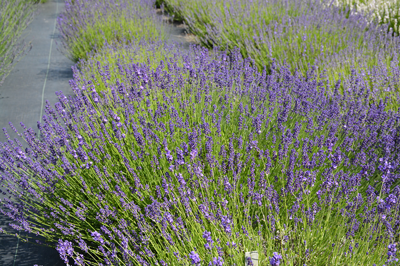 Provence Blue Lavender will grow to be about 12 inches tall at maturity extending to 16 inches tall with the flowers, with a spread of 14 inches. When grown in masses or used as a bedding plant, individual plants should be spaced approximately 12 inches apart. Its foliage tends to remain dense right to the ground, not requiring facer plants in front. Although it's not a true annual, this slow-growing plant can be expected to behave as an annual in our climate if left outdoors over the winter, usually needing replacement the following year. As such, gardeners should take into consideration that it will perform differently than it would in its native habitat.