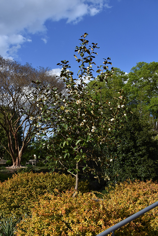 This beautiful evergreen variety makes a great accent, smothered in showy and fragrant white cup-shaped flowers in spring; attractive, small, glossy leaves with brown undersides, and a compact, upright habit of growth