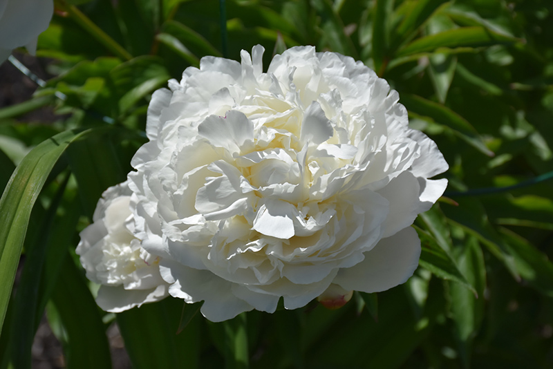 This elegant, large, double-white peony is a midseason bloomer; the fragrant flowers open on strong stems, over dark green foliage, making them an excellent cut flower