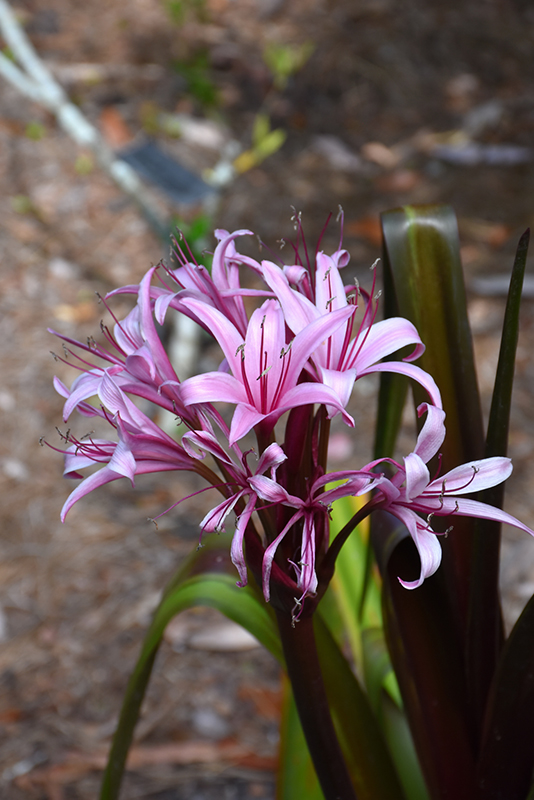 Blooms of pink among tall blades of bronze-purple foliage grace this lovely plant; great visual impact when massed in the garden or along borders; blooms in late spring, then again in fall; exceptional winter hardiness for a purple crinum