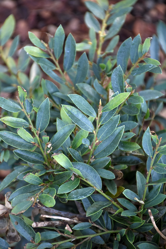 A refined evergreen plant with emerging light green foliage that matures to a glossy dark green; in late winter to early spring, small red flowers emerge along the older branches; very elegant when massed together or as an accent shrub