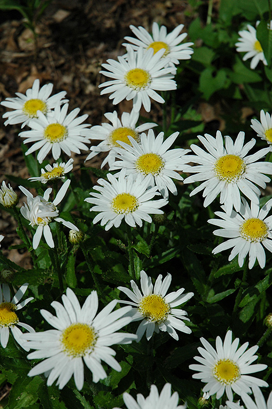 Angel Shasta Daisy will grow to be about 8 inches tall at maturity extending to 12 inches tall with the flowers, with a spread of 24 inches. When grown in masses or used as a bedding plant, individual plants should be spaced approximately 20 inches apart. It grows at a fast rate, and under ideal conditions can be expected to live for approximately 5 years. As an herbaceous perennial, this plant will usually die back to the crown each winter, and will regrow from the base each spring. Be careful not to disturb the crown in late winter when it may not be readily seen!