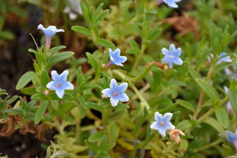 Heavenly Blue Lithodora will grow to be only 5 inches tall at maturity, with a spread of 24 inches. Its foliage tends to remain low and dense right to the ground. It grows at a medium rate, and under ideal conditions can be expected to live for approximately 10 years. As an evegreen perennial, this plant will typically keep its form and foliage year-round.