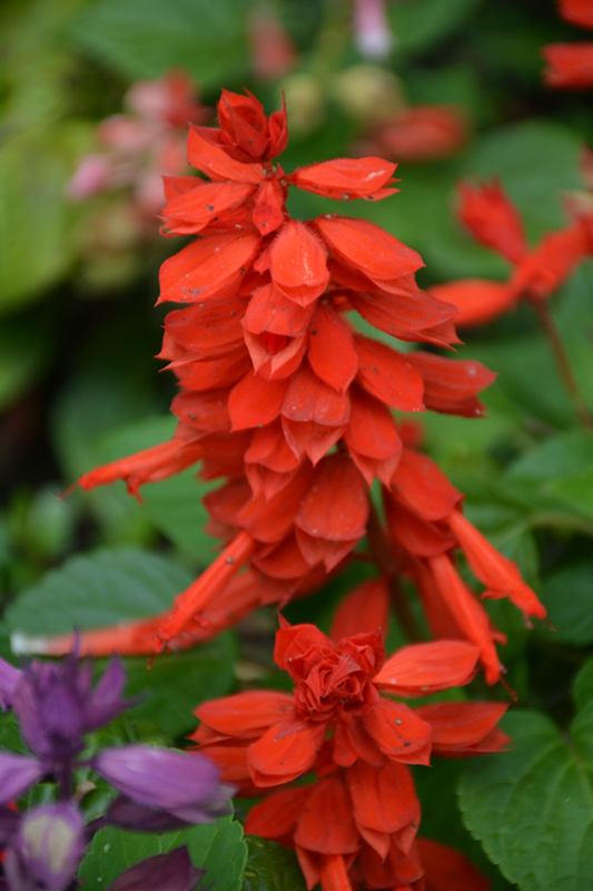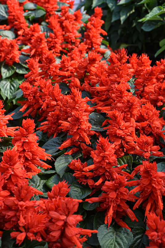 A fine salvia, producing large spikes of radiant scarlet red blooms all season; a beautiful border or edging plant with its compact, dense form; looks fantastic in containers