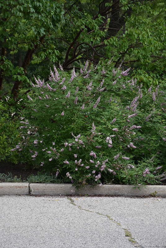 Pink Pinnacle™ Chaste Tree will grow to be about 8 feet tall at maturity, with a spread of 8 feet. It tends to be leggy, with a typical clearance of 1 foot from the ground, and should be underplanted with lower-growing perennials. Although it is technically a woody plant, this fast-growing plant can be expected to behave as a perennial in our climate if planted outdoors over the winter, usually regrowing from its base (crown) the following year. As such, gardeners should take into consideration that it will perform differently than it would in its native habitat.