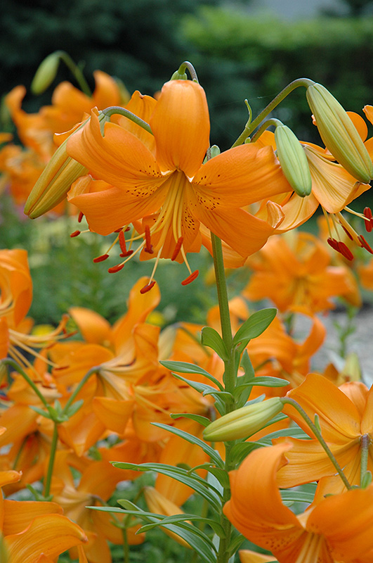 Alexis Lily features bold nodding orange trumpet-shaped flowers at the ends of the stems in early summer. The flowers are excellent for cutting. Its narrow leaves remain green in colour throughout the season.