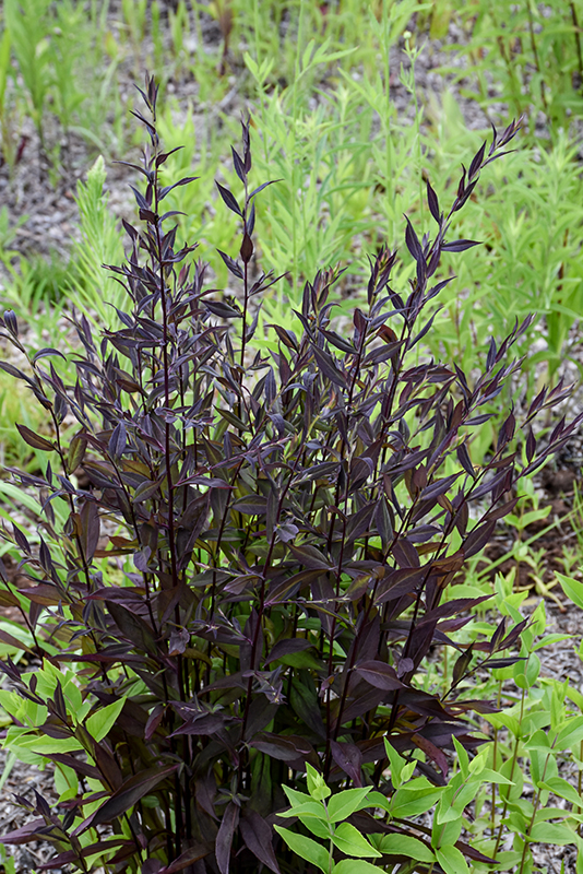 Lady In Black Calico Aster is covered in stunning white daisy flowers with shell pink overtones and rose eyes at the ends of the stems from late summer to mid fall. The flowers are excellent for cutting. Its attractive narrow leaves emerge chartreuse in spring, turning deep purple in colour with hints of black throughout the season. The black stems can be quite attractive.
