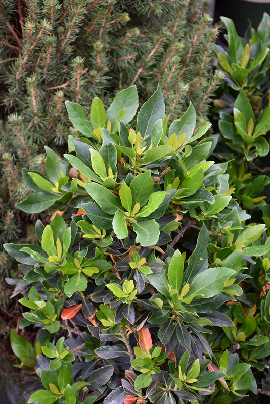 This tightly branched, compact variety is a superb ornamental shrub that can also be maintained as a screen or hedge; older leaves turn a stunning red and persist until new leaves emerge; subtle flowers are highly fragrant; fruits are deep cobalt blue