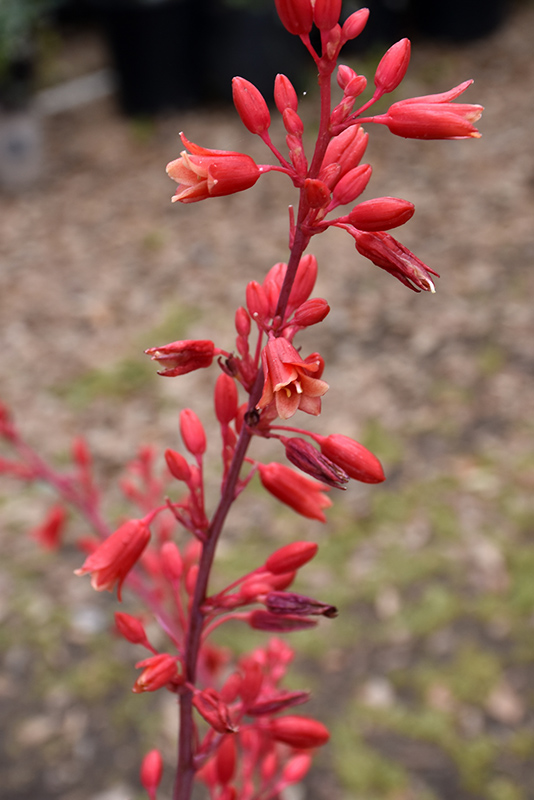 Sandia Glow® Red Yucca features showy spikes of scarlet bell-shaped flowers with peach eyes rising above the foliage from early spring to early fall. Its attractive succulent grassy leaves are grayish green in colour. The foliage often turns burgundy in fall. It produces khaki (brownish-green) capsules in late fall. The red stems can be quite attractive.