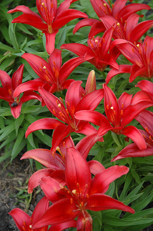 Blackbird Lily features bold ruby-red trumpet-shaped flowers at the ends of the stems in early summer. The flowers are excellent for cutting. Its narrow leaves remain green in colour throughout the season.