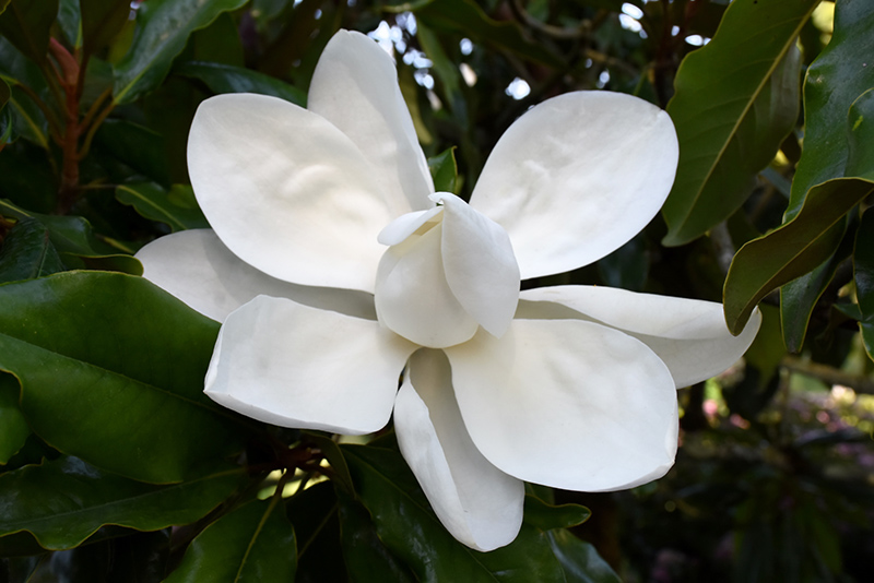A beautiful flowering accent tree for smaller home landscapes, smothered in showy and fragrant white cup-shaped flowers in spring through fall; large glossy leaves with reddish-brown undersides and an upright, broad habit of growth