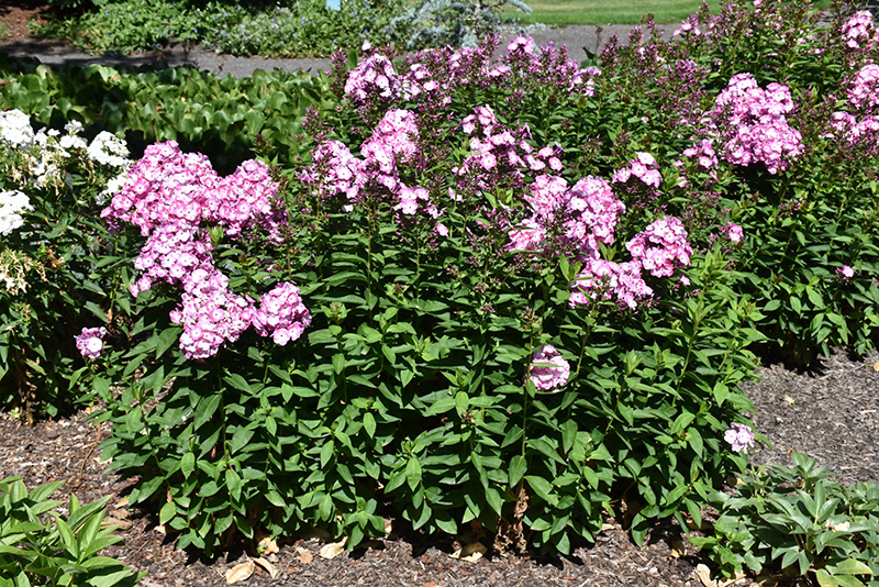 Volcano® Pink with White Eye Garden Phlox is a dense herbaceous perennial with an upright spreading habit of growth. Its medium texture blends into the garden, but can always be balanced by a couple of finer or coarser plants for an effective composition.