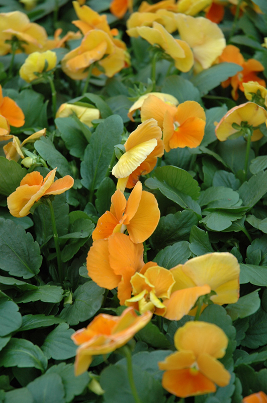 Matrix® Orange Pansy will grow to be only 6 inches tall at maturity extending to 8 inches tall with the flowers, with a spread of 8 inches. When grown in masses or used as a bedding plant, individual plants should be spaced approximately 6 inches apart. Although it's not a true annual, this fast-growing plant can be expected to behave as an annual in our climate if left outdoors over the winter, usually needing replacement the following year. As such, gardeners should take into consideration that it will perform differently than it would in its native habitat.