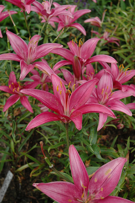 La Toya Lily will grow to be about 24 inches tall at maturity, with a spread of 18 inches. When grown in masses or used as a bedding plant, individual plants should be spaced approximately 14 inches apart. It tends to be leggy, with a typical clearance of 1 foot from the ground, and should be underplanted with lower-growing perennials. It grows at a fast rate, and under ideal conditions can be expected to live for approximately 10 years. As an herbaceous perennial, this plant will usually die back to the crown each winter, and will regrow from the base each spring. Be careful not to disturb the crown in late winter when it may not be readily seen!