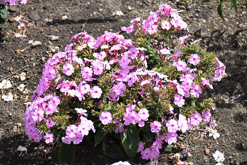 Garden Girls® Uptown Girl Garden Phlox will grow to be about 32 inches tall at maturity, with a spread of 32 inches. When grown in masses or used as a bedding plant, individual plants should be spaced approximately 28 inches apart. It grows at a medium rate, and under ideal conditions can be expected to live for approximately 10 years. As an herbaceous perennial, this plant will usually die back to the crown each winter, and will regrow from the base each spring. Be careful not to disturb the crown in late winter when it may not be readily seen!