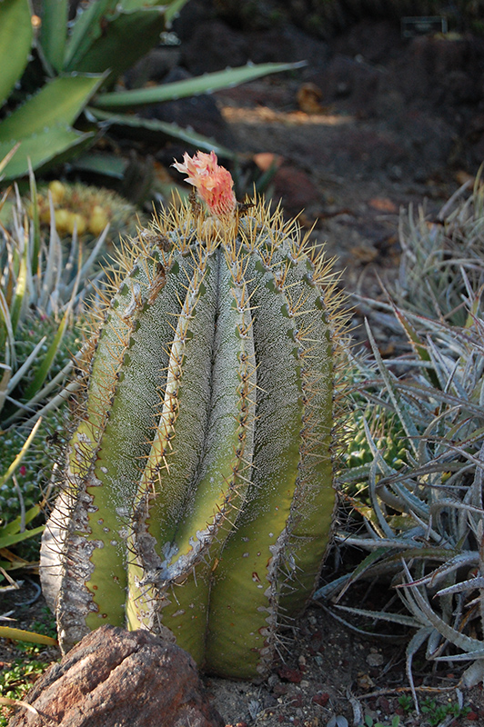 Monk's Hood Cactus is a fine choice for the garden, but it is also a good selection for planting in outdoor pots and containers. Because of its height, it is often used as a 'thriller' in the 'spiller-thriller-filler' container combination; plant it near the center of the pot, surrounded by smaller plants and those that spill over the edges. Note that when growing plants in outdoor containers and baskets, they may require more frequent waterings than they would in the yard or garden. Be aware that in our climate, most plants cannot be expected to survive the winter if left in containers outdoors, and this plant is no exception. Contact our experts for more information on how to protect it over the winter months.