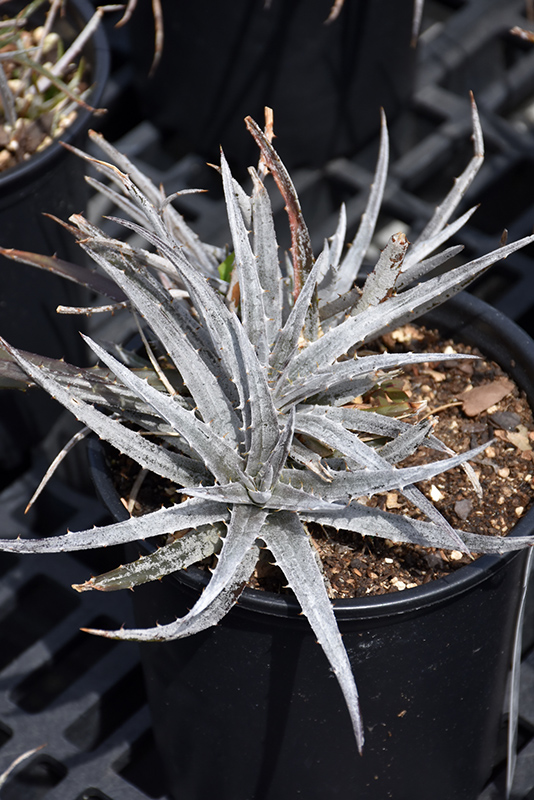 Nickel Silver Dyckia is a fine choice for the garden, but it is also a good selection for planting in outdoor pots and containers. Because of its spreading habit of growth, it is ideally suited for use as a 'spiller' in the 'spiller-thriller-filler' container combination; plant it near the edges where it can spill gracefully over the pot. Note that when growing plants in outdoor containers and baskets, they may require more frequent waterings than they would in the yard or garden. Be aware that in our climate, most plants cannot be expected to survive the winter if left in containers outdoors, and this plant is no exception. Contact our experts for more information on how to protect it over the winter months.