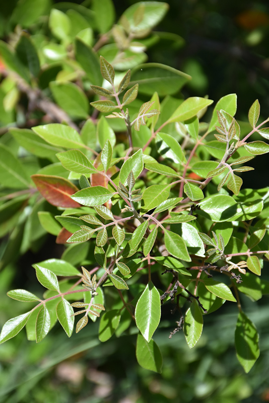 Evergreen Sumac is a dense multi-stemmed evergreen shrub with an upright spreading habit of growth. Its relatively fine texture sets it apart from other landscape plants with less refined foliage.