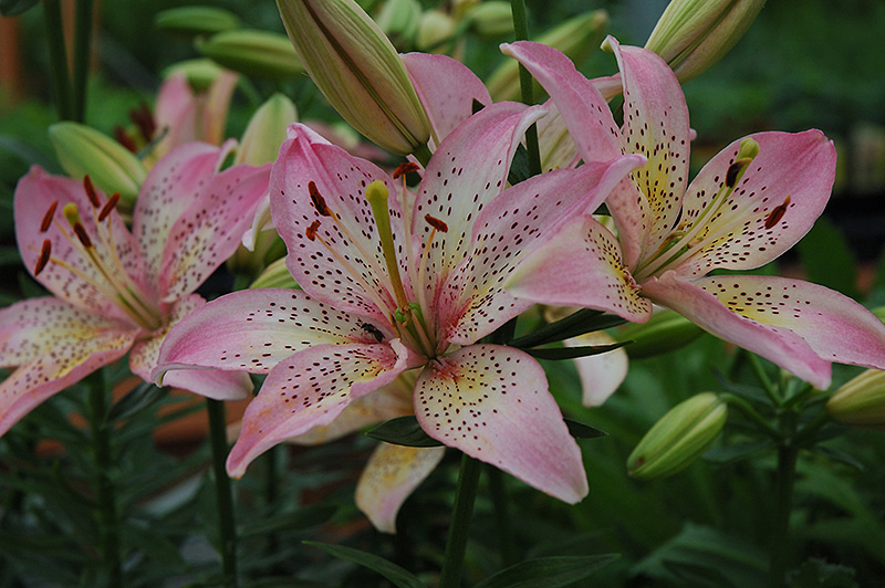 Pixie Lily will grow to be about 12 inches tall at maturity extending to 18 inches tall with the flowers, with a spread of 12 inches. When grown in masses or used as a bedding plant, individual plants should be spaced approximately 10 inches apart. It grows at a fast rate, and under ideal conditions can be expected to live for approximately 10 years. As an herbaceous perennial, this plant will usually die back to the crown each winter, and will regrow from the base each spring. Be careful not to disturb the crown in late winter when it may not be readily seen!