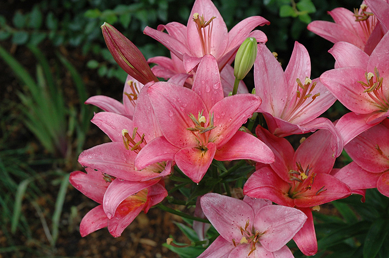 Presto Lily will grow to be about 3 feet tall at maturity, with a spread of 18 inches. When grown in masses or used as a bedding plant, individual plants should be spaced approximately 14 inches apart. It tends to be leggy, with a typical clearance of 1 foot from the ground, and should be underplanted with lower-growing perennials. The flower stalks can be weak and so it may require staking in exposed sites or excessively rich soils. It grows at a fast rate, and under ideal conditions can be expected to live for approximately 10 years. As an herbaceous perennial, this plant will usually die back to the crown each winter, and will regrow from the base each spring. Be careful not to disturb the crown in late winter when it may not be readily seen!