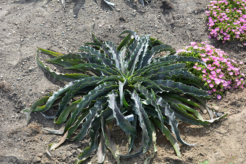 This amazing selection produces a low growing rosette of narrow, very wavy, dark green leaves, with dark purple spots; grown primarily for foliage; a great low-maintenance patio container plant; must have good drainage