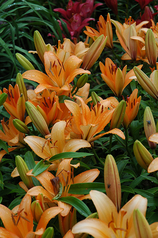 Royal Perfume Lily features bold orange trumpet-shaped flowers with peach overtones at the ends of the stems in mid summer. The flowers are excellent for cutting. Its narrow leaves remain green in colour throughout the season.