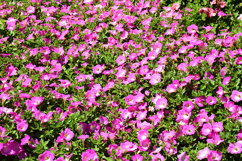Opera Supreme Pink Morn Petunia will grow to be only 6 inches tall at maturity, with a spread of 4 feet. When grown in masses or used as a bedding plant, individual plants should be spaced approximately 32 inches apart. Its foliage tends to remain low and dense right to the ground. This fast-growing annual will normally live for one full growing season, needing replacement the following year.