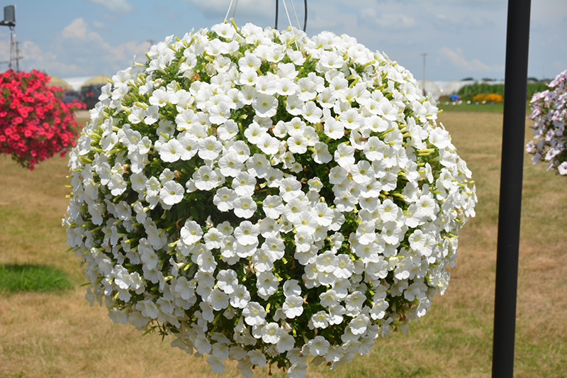 Supertunia® White Charm Petunia is a fine choice for the garden, but it is also a good selection for planting in outdoor containers and hanging baskets. Because of its trailing habit of growth, it is ideally suited for use as a 'spiller' in the 'spiller-thriller-filler' container combination; plant it near the edges where it can spill gracefully over the pot. Note that when growing plants in outdoor containers and baskets, they may require more frequent waterings than they would in the yard or garden.