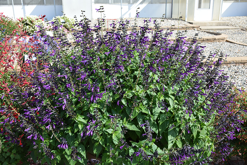 Purple & Bloom Sage is a fine choice for the garden, but it is also a good selection for planting in outdoor pots and containers. With its upright habit of growth, it is best suited for use as a 'thriller' in the 'spiller-thriller-filler' container combination; plant it near the center of the pot, surrounded by smaller plants and those that spill over the edges. It is even sizeable enough that it can be grown alone in a suitable container. Note that when growing plants in outdoor containers and baskets, they may require more frequent waterings than they would in the yard or garden.