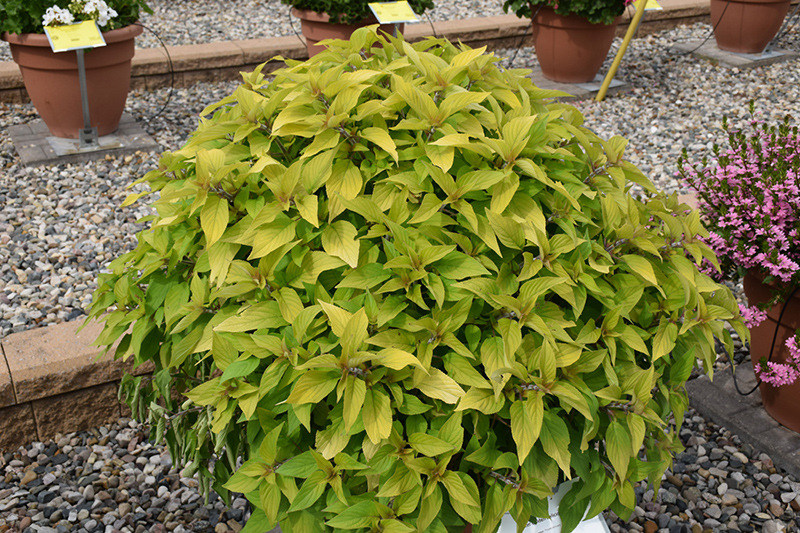 Rockin'® Golden Delicious is a fine choice for the garden, but it is also a good selection for planting in outdoor pots and containers. With its upright habit of growth, it is best suited for use as a 'thriller' in the 'spiller-thriller-filler' container combination; plant it near the center of the pot, surrounded by smaller plants and those that spill over the edges. It is even sizeable enough that it can be grown alone in a suitable container. Note that when growing plants in outdoor containers and baskets, they may require more frequent waterings than they would in the yard or garden.