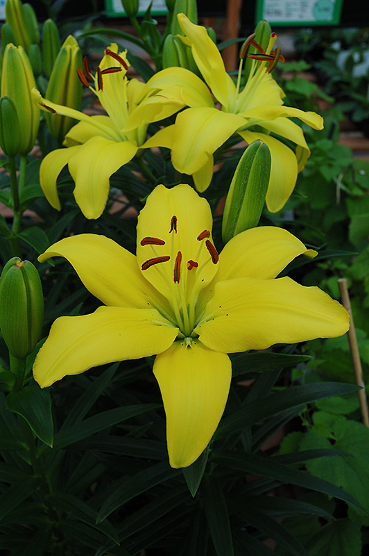 Yellow Pixie Lily will grow to be about 12 inches tall at maturity extending to 18 inches tall with the flowers, with a spread of 12 inches. When grown in masses or used as a bedding plant, individual plants should be spaced approximately 10 inches apart. It grows at a fast rate, and under ideal conditions can be expected to live for approximately 10 years. As an herbaceous perennial, this plant will usually die back to the crown each winter, and will regrow from the base each spring. Be careful not to disturb the crown in late winter when it may not be readily seen!