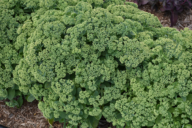 Pool Party Stonecrop will grow to be about 14 inches tall at maturity, with a spread of 24 inches. When grown in masses or used as a bedding plant, individual plants should be spaced approximately 18 inches apart. Its foliage tends to remain dense right to the ground, not requiring facer plants in front. It grows at a fast rate, and under ideal conditions can be expected to live for approximately 15 years. As an herbaceous perennial, this plant will usually die back to the crown each winter, and will regrow from the base each spring. Be careful not to disturb the crown in late winter when it may not be readily seen!