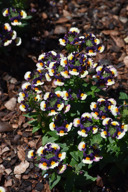 Honey Bicolor Orange Flame Nemesia features dainty lightly-scented deep purple pea-like flowers with buttery yellow overtones and orange eyes at the ends of the stems from mid spring to mid fall. Its small pointy leaves remain green in colour throughout the season.