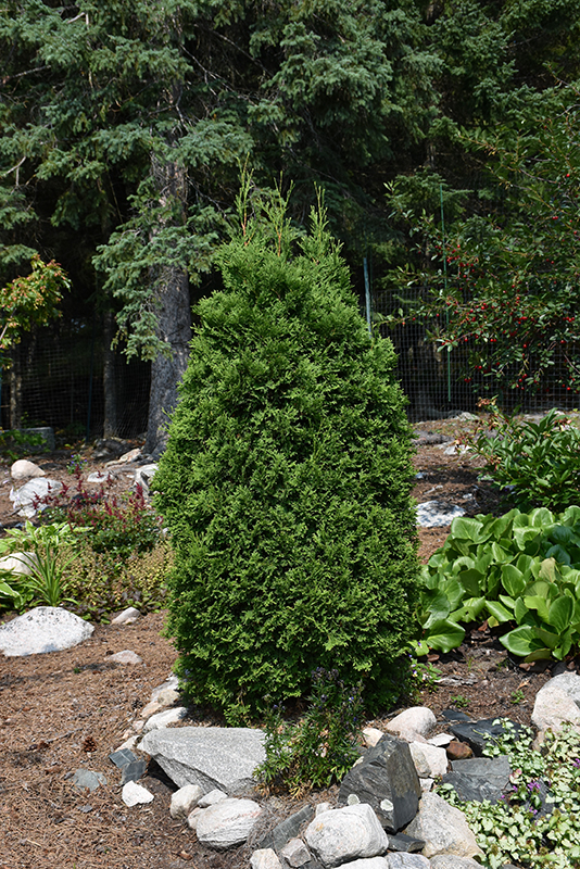 Baby Bear® Dwarf Arborvitae is a dwarf conifer which is primarily valued in the landscape or garden for its distinctively pyramidal habit of growth. It has dark green evergreen foliage. The scale-like sprays of foliage remain dark green throughout the winter.