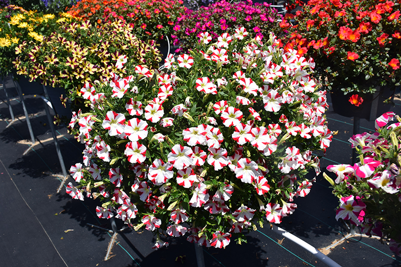 This stunning variety features white flowers with bright red heart shaped patterns; mounded habit makes it ideal for hanging baskets, patio containers and garden landscapes; attracts pollinators; heat and drought tolerant; low maintenance