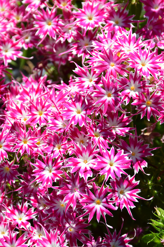 Popstars™ Rose with Eye Phlox is smothered in stunning fragrant rose star-shaped flowers with yellow eyes and white centers at the ends of the stems from late spring to late summer. Its narrow leaves remain green in colour throughout the season.