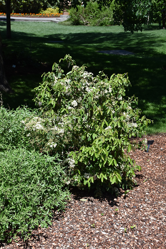 Snow Joey™ Viburnum will grow to be about 8 feet tall at maturity, with a spread of 6 feet. When grown in masses or used as a bedding plant, individual plants should be spaced approximately 4 feet apart. It has a low canopy with a typical clearance of 1 foot from the ground, and is suitable for planting under power lines. It grows at a fast rate, and under ideal conditions can be expected to live for 40 years or more. While it is considered to be somewhat self-pollinating, it tends to set heavier quantities of fruit with a different variety of the same species growing nearby.