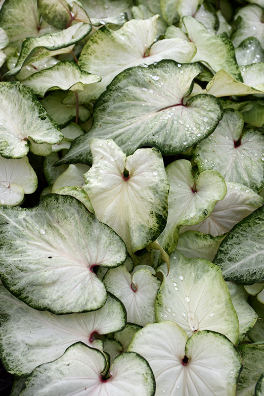 White Delight Caladium is a dense herbaceous annual with a mounded form. Its relatively coarse texture can be used to stand it apart from other garden plants with finer foliage.