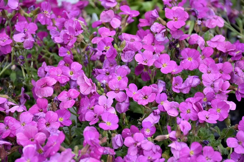 Axcent™ Lilac Rock Cress will grow to be only 4 inches tall at maturity extending to 6 inches tall with the flowers, with a spread of 18 inches. Its foliage tends to remain low and dense right to the ground. It grows at a slow rate, and under ideal conditions can be expected to live for approximately 10 years. As an evegreen perennial, this plant will typically keep its form and foliage year-round.