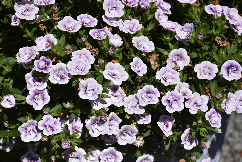 MiniFamous® Uno Double PlumTastic Calibrachoa is smothered in stunning double lilac purple trumpet-shaped flowers with plum purple overtones at the ends of the stems from late spring to early fall. Its small pointy leaves remain green in colour throughout the season.