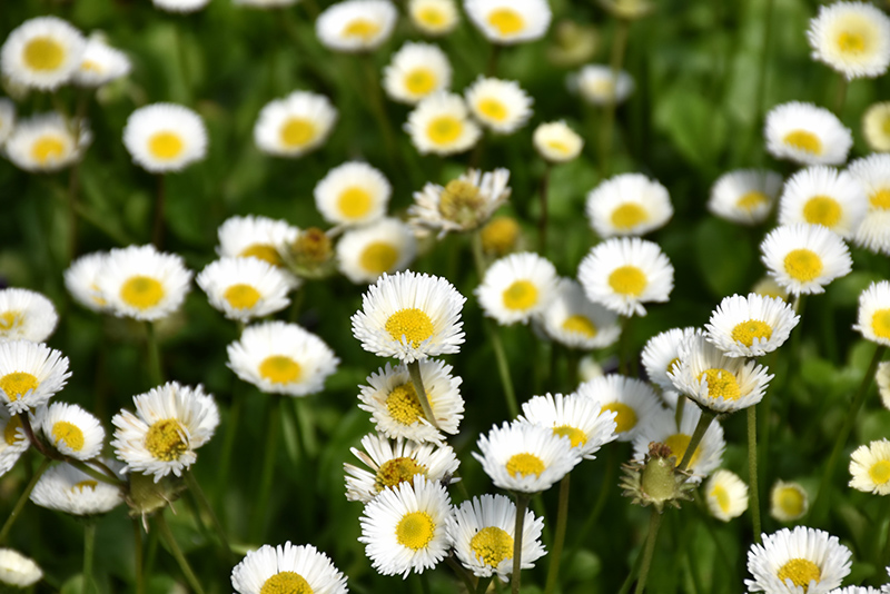 White English Daisy will grow to be only 4 inches tall at maturity extending to 6 inches tall with the flowers, with a spread of 8 inches. When grown in masses or used as a bedding plant, individual plants should be spaced approximately 6 inches apart. Its foliage tends to remain low and dense right to the ground. It grows at a fast rate, and tends to be biennial, meaning that it puts on vegetative growth the first year, flowers the second, and then dies. However, this species tends to self-seed and will thereby endure for years in the garden if allowed.