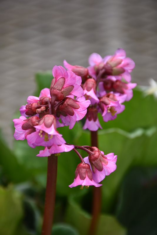 Large glossy, leathery, cabbage-like leaves turn deep bronze-purple late in the season and into winter; interesting clusters of showy, hot pink flowers rise above foliage in spring; great for shady areas; water regularly but don't over water